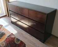 Форма комода прямоугольная, опорной частью является цоколь. Прекрасно впишется в разные по стилю помещения.