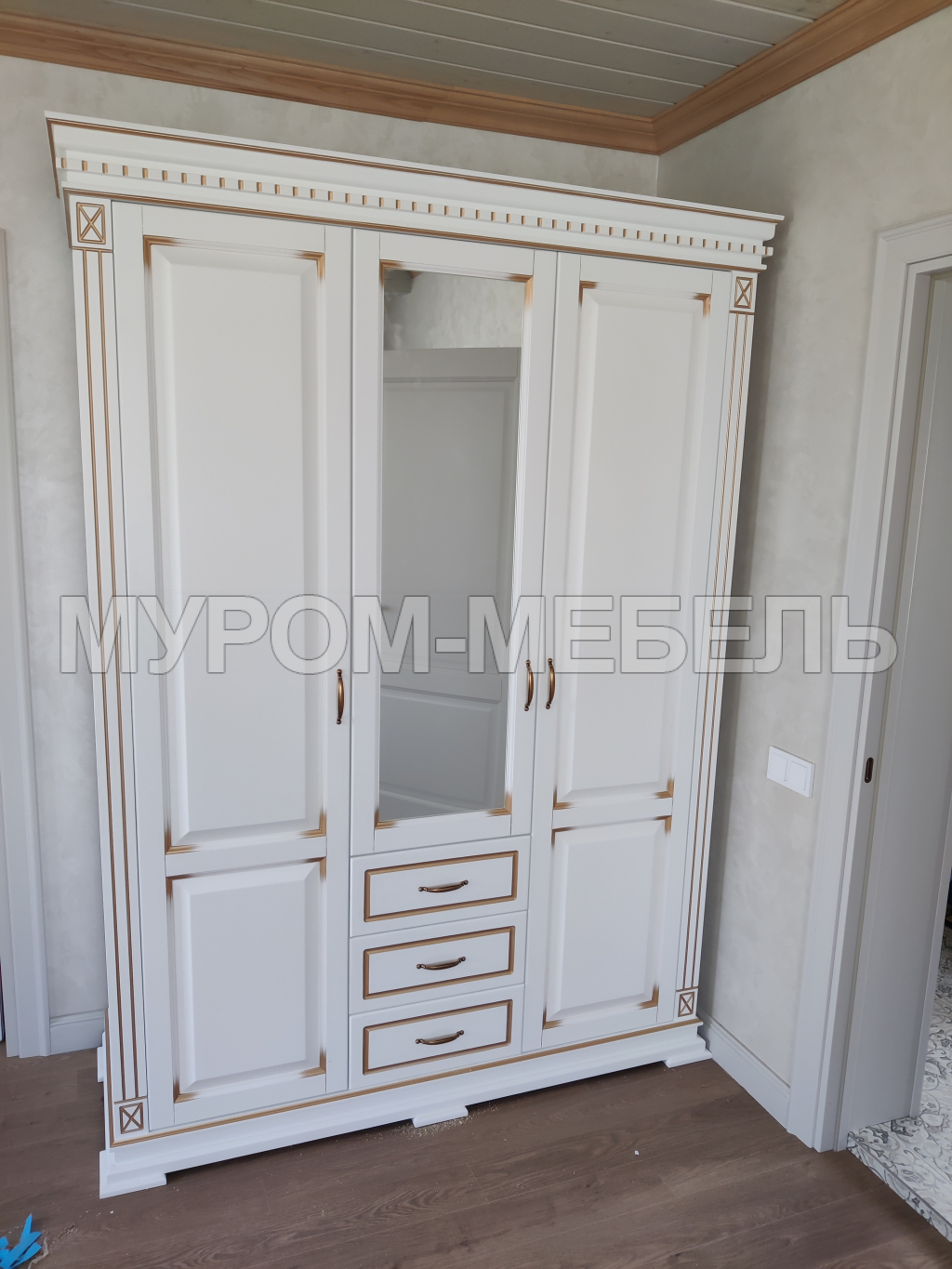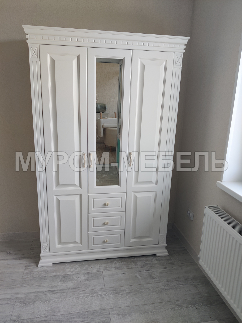 Шкаф 3-х створчатый Флоренция прекрасно подходит для хранения короткой и длинной одежды на плечиках, а также сложенных вещей, коробок с обувью и прочих мелочей. Для этой цели представленный товар комплектуется отделом со штангой, многочисленными полками и выдвижными ящиками. Зеркало прямоугольной формы, занимающее центральную дверь является необходимым атрибутом в любой спальне. Представленная модель привлекает взор эстетической красотой. Она поможет создать по-настоящему благородную атмосферу в комнате.