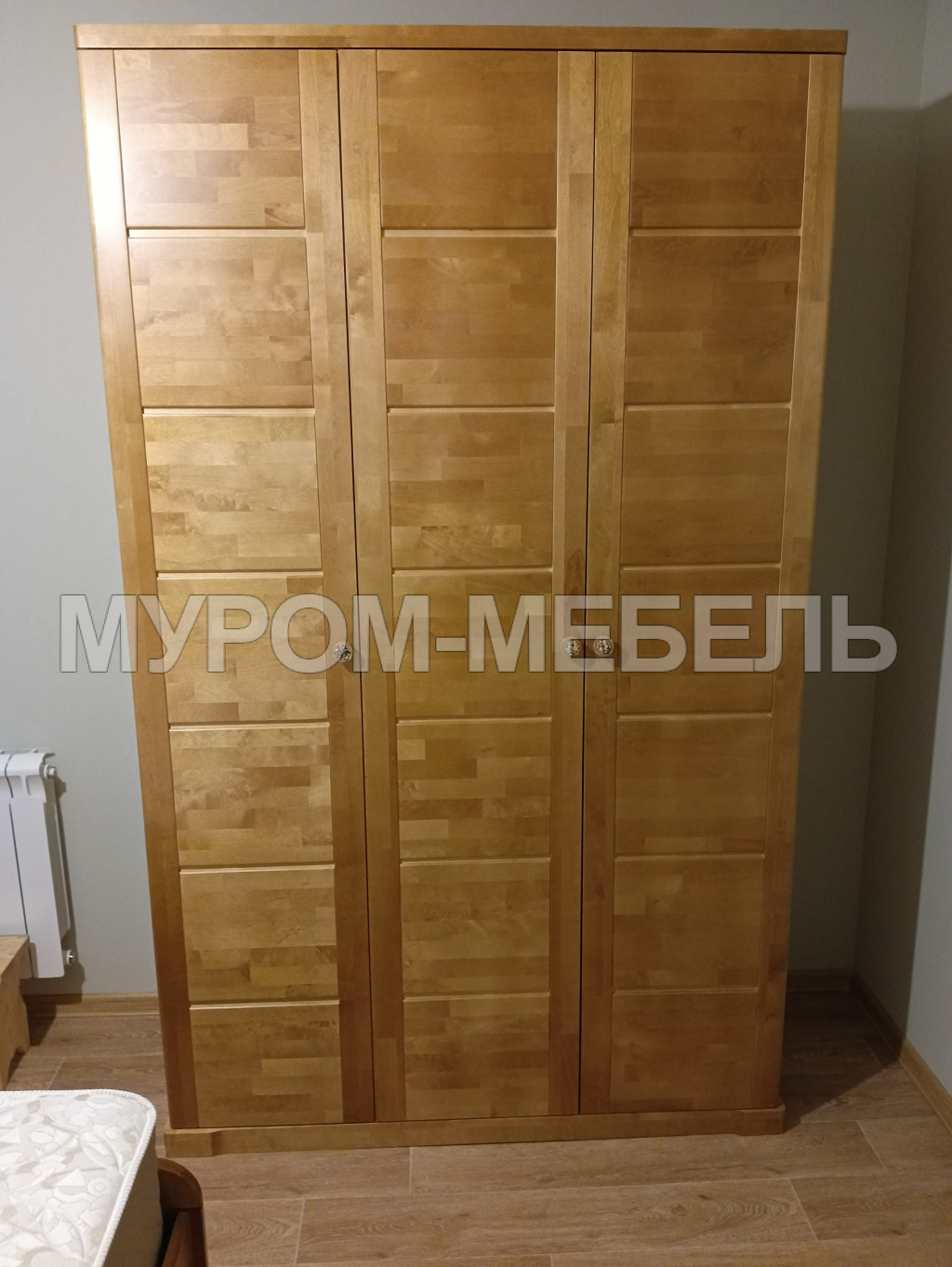Сосна - щит мебельный сращенный (класс Экстра), задняя стенка: ламинированная ДВП (без доплаты) или фанера в цвет изделия (с доплатой). Изготовление из березы, бука, дуба – с доплатой.