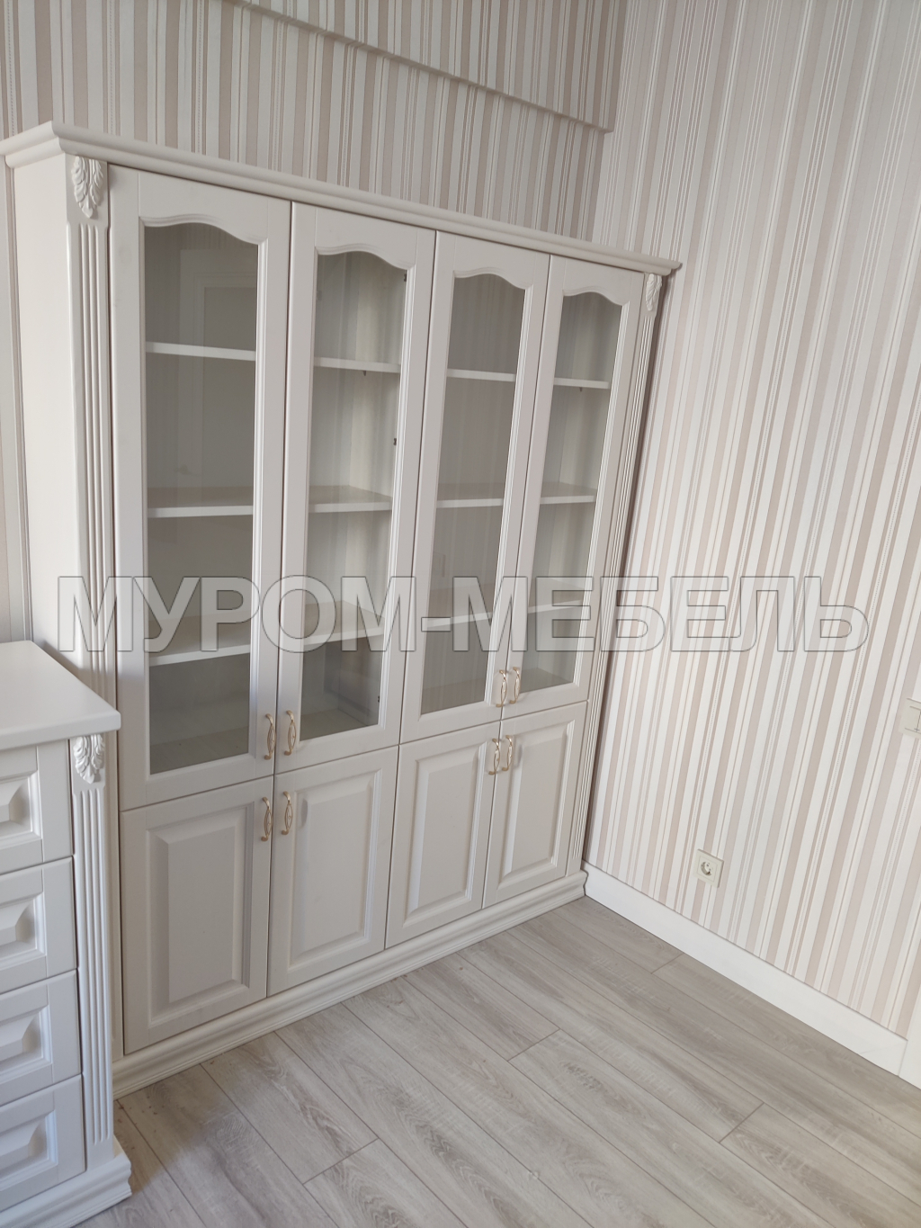 Мебель коричневого цвета всегда элегантна и идеально гармонирует с интерьером. Шкаф Библиотека со стеклянными дверками подходит как для гостиной, так и для кабинета. Массив натурального дерева прослужит много лет, а специальная обработка защитит от повреждений.