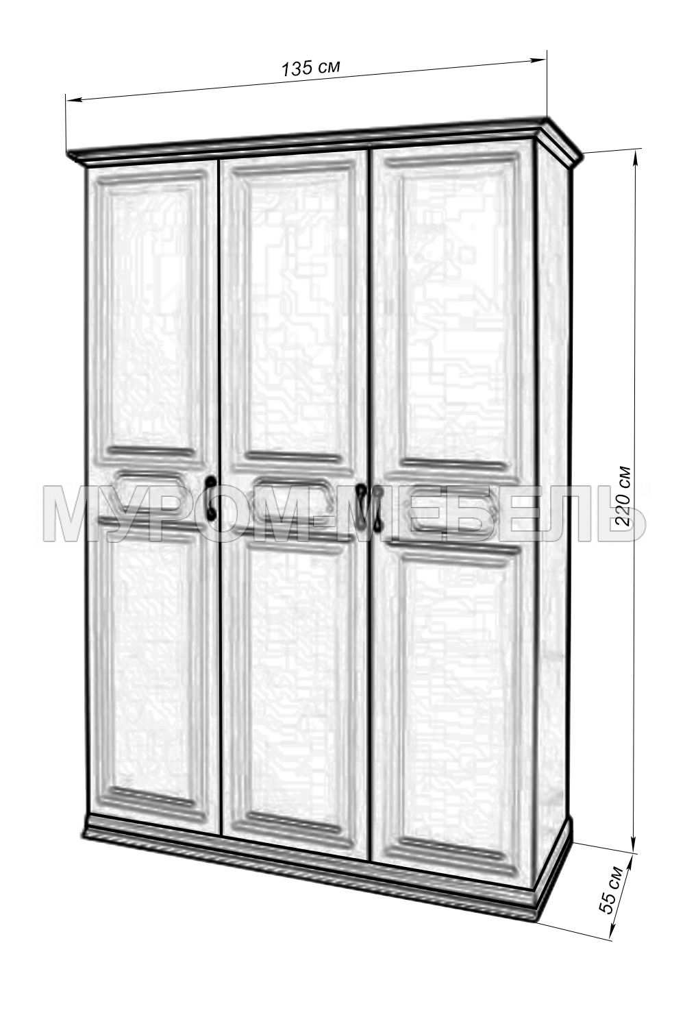 Шкаф трехстворчатый Силуэт изготовлен из массива сосны и покрыт экологически безопасной краской, которая не выделяет вредных веществ. Силуэт блистательно дополнит интерьер спальной, прихожей, рабочего кабинета и даже офиса.